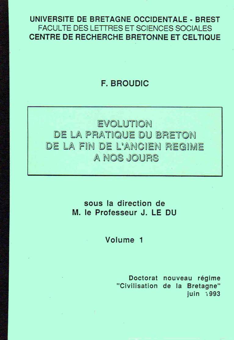 La question linguistique est un sujet sensible en Bretagne. La thèse, tout d'abord, établit les faits. La statistique officielle n'avait jamais pensé à dénombrer ceux qui parlent une autre langue que le français. Mais en compulsant toutes les archives et les sources disponibles, en effectuant des sondages et des enquêtes, l'auteur a pu fournir des indications précises et le plus souvent inédites sur le niveau de pratique du breton depuis plus de deux siècles.